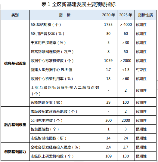 以双千兆、城市物联网引领网络基础设施升级,构建面向川渝、融入全国的云计算大数据基础设施,推进5G、人工智能、大数据与传统基础设施融合建设,提升创新基础设施能级。到2025年,基本建成系统完备、高效实用、智能绿色、安全可靠的现代化基础设施体系,全区新型基础设施建设规模和创新能级达到国内一流水平,有力支撑我区在“成渝地区双城经济圈建设”和“一区两群”协同发展中发挥更大作为,推动实现“十个新提升”,将我区打造成为成渝地区新型基础设施创新示范区。
