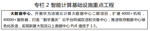 提升高性能计算基础设施能级。稳步提高数据中心单体规模、单机架功率,加快高性能、智能计算中心部署,推动CPU、GPU等异构算力提升,逐步提高自主研发算力的部署比例,推进新型数据中心算力供应多元化,支撑各类智能应用。充分发挥算力支撑作用,吸引智能制造、人工智能、智能联网汽车等大数据关联产业,带动数据服务及硬件研发制造等产业形成集聚。