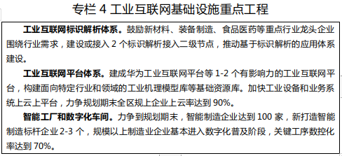 持续推进企业内外网改造升级。推动基础电信企业建设覆盖全区工业园区的高质量外网,推动骨干企业完成工业互联网内网改造,内外联动建成低时延、高可靠、大带宽、广覆盖、可定制的工业互联网网络基础设施。