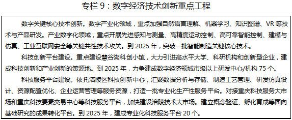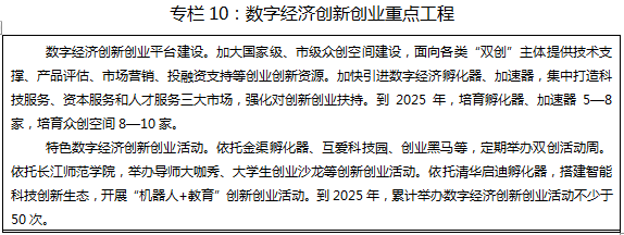 ——数字产业化上规模。到2025年,数字经济核心产业增加值占GDP比重超过10%,规上数字经济企业达到50家,数字经济产业产业技术创新能力大幅增强,打造集成电路、智能网联汽车、大数据云计算、区块链、数字内容、软件及信息服务等数字产业集群。