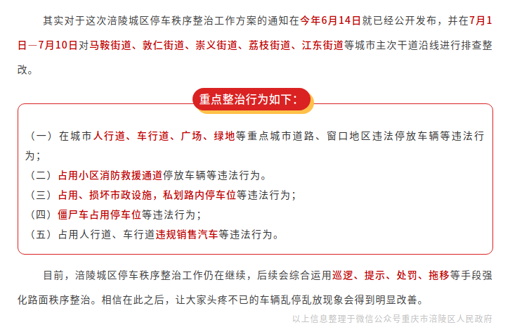 媒体解读 |严打整治!涪陵开展城区停车秩序整治工作
