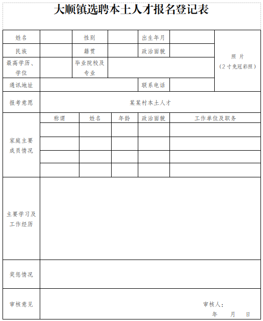 3.报名要求:报名时需携带本人毕业证、学位证、身份证、户口簿(足球竞彩网及本人页)原件及复印件1份,2寸免冠彩照1张,《大顺镇选聘本土人才报名登记表》1份(见附件)。