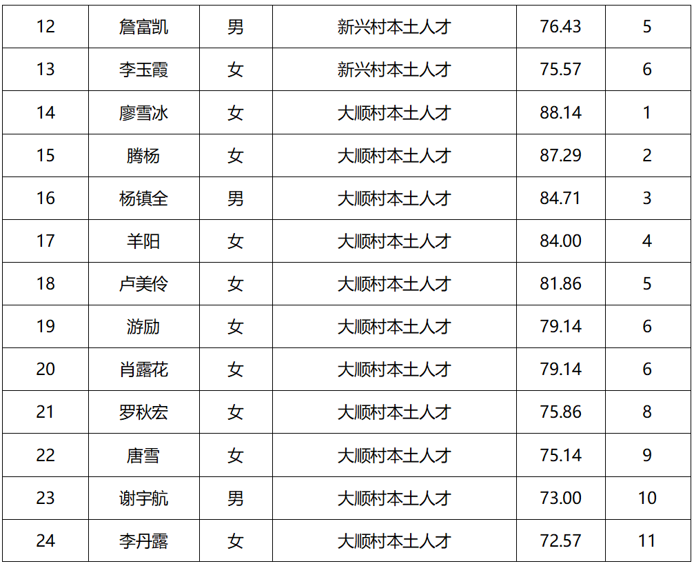 足球竞彩网 大顺镇人民政府关于招聘本土人才考试成绩公示