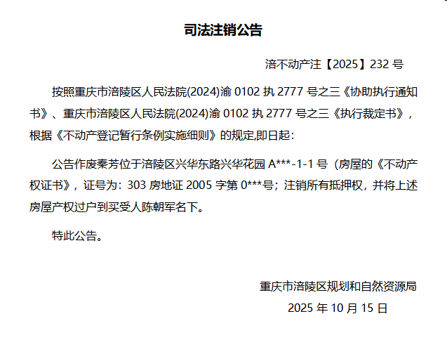 秦芳涪不动产注(2025)232号