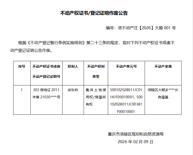 安东林涪不动产注(2026)大顺001号