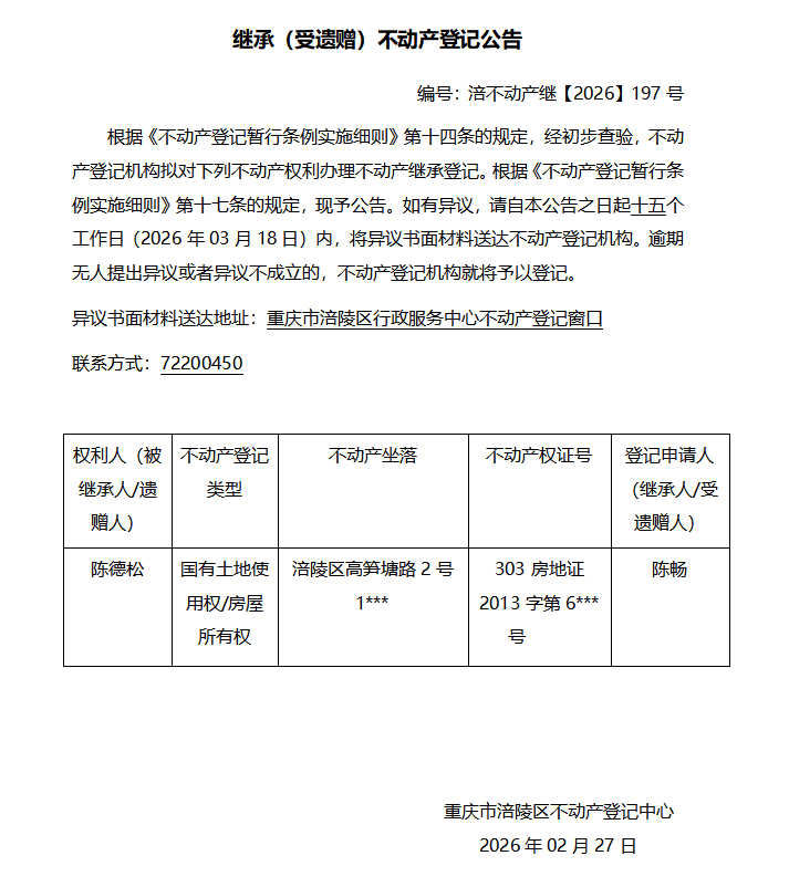 陈德松涪不动产继【2026】197号