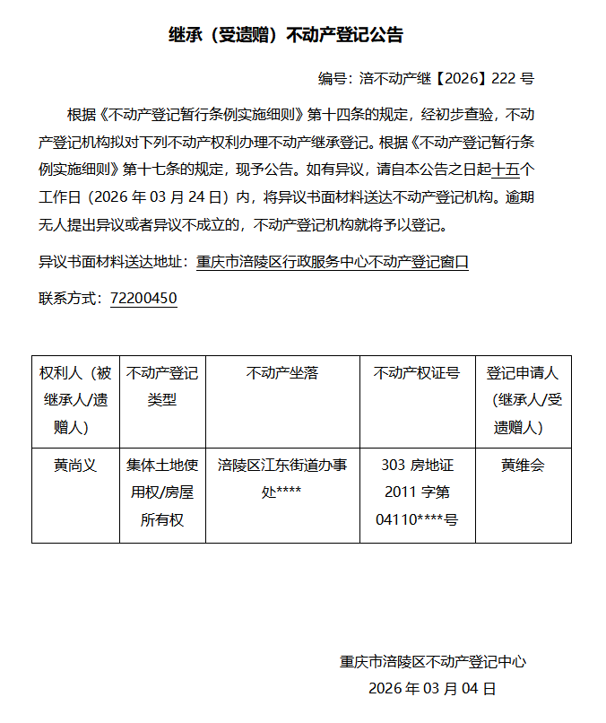 黄尚义涪不动产继【2026】222号