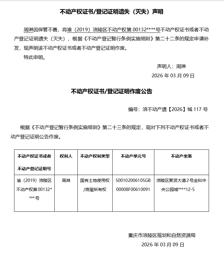 周淋涪不动产遗【2026】城117号