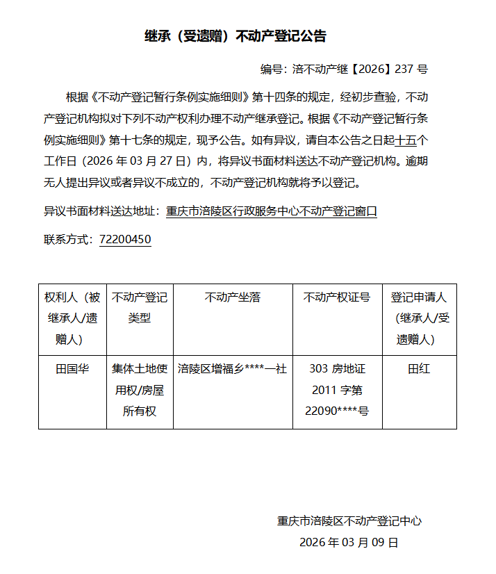 田国华涪不动产继【2026】237号