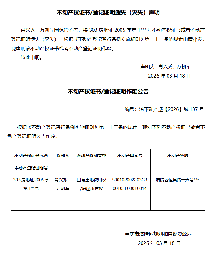 肖兴秀,万朝军涪不动产遗【2026】城137号