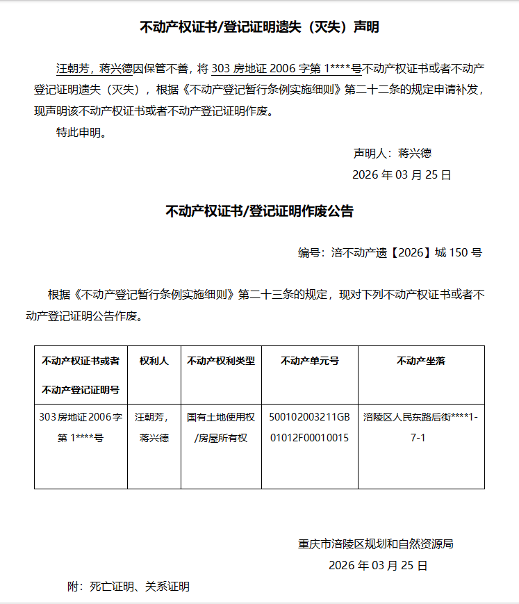 汪朝芳、蒋兴德涪不动产遗【2026】城150号