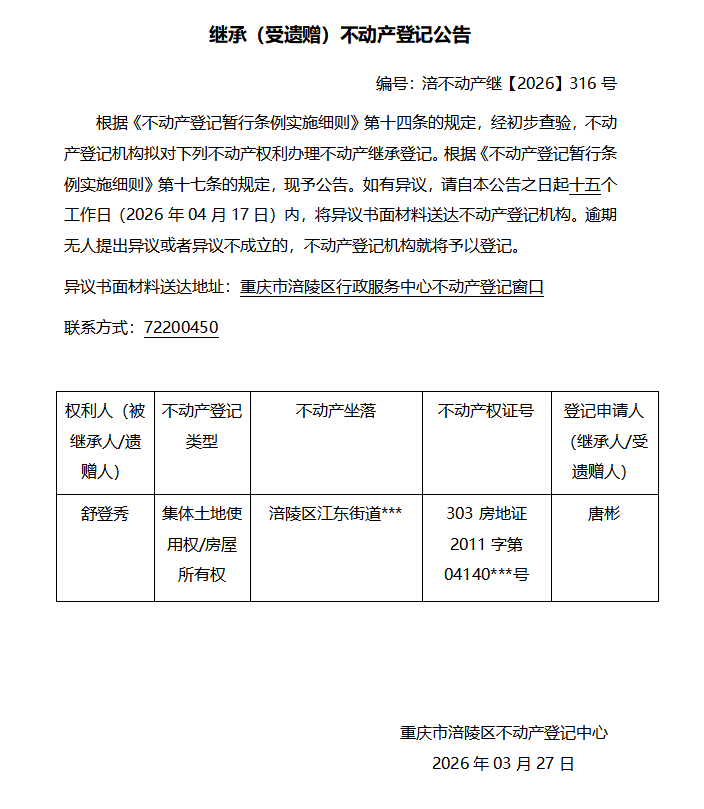 舒登秀涪不动产继【2026】316号