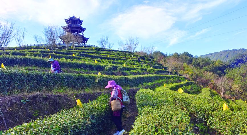 采茶工在方坪茶基地采摘新茶