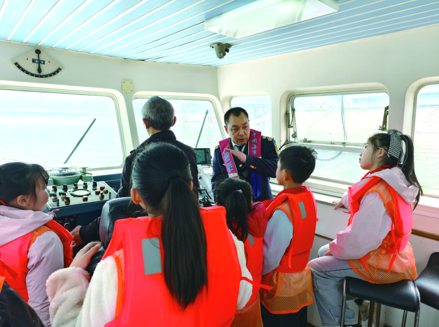 活动设置了移动环保课堂、感受科技护河、净滩挑战赛等丰富多彩的环节。孩子们登上“海巡12510”船,听“海燕”志愿者讲解重庆船舶“零排放”的立法之路,上了一堂移动的环保课;在“环保船”上,工作人员详细讲解了船舶垃圾、生活污水、油污水的接收、转岸和处理流程,孩子们发出阵阵惊叹——原来污水是这样上岸变清的!在五码头,大家参观了水上智能岸电系统和船舶污水储存装置,港口“绿心脏”,让母亲河更健康;最后,大家以结对小队为单位,拿起垃圾夹和垃圾袋,开展净滩挑战赛,烟头、塑料瓶、纸屑……仔细搜寻,不放过任何一个角落。经过半小时的努力,河滩变得干净整洁,孩子们脸上洋溢着自豪的笑容。