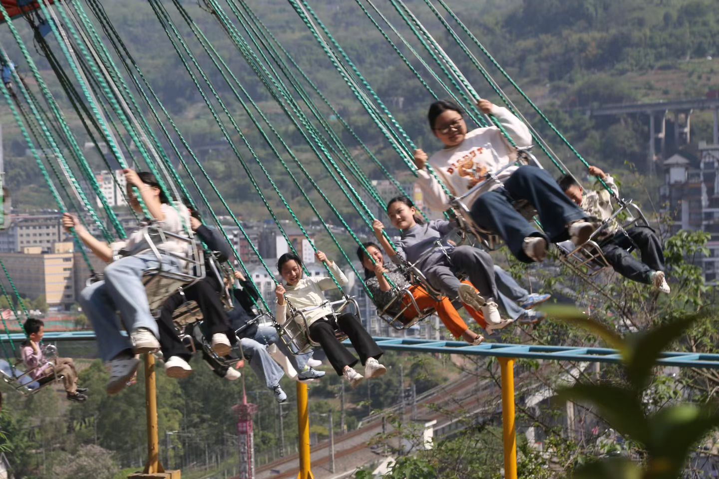 民宿火爆只是景区创新场景的缩影。近年来,景区深耕“农业+文化+交通+旅游”融合模式,打造诸多创意项目:全球首条索道环线让游客空中俯瞰两江交汇美景,实现“坐着索道上春山”;眼镜蛇过山车依山而建,惊险刺激与自然风光相融,收获大批游客喜爱。年初刀片民宿相关视频在海外社交平台传播后,景区更是凭借脑洞大开的创意设计,吸引众多国外网友关注。