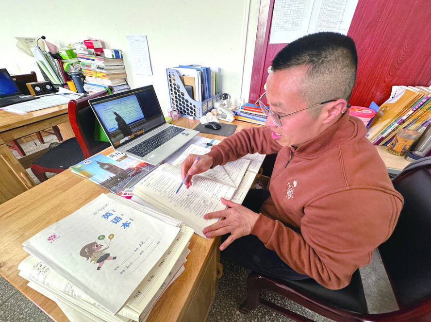 涪陵十七中许勇兵老师正在备课